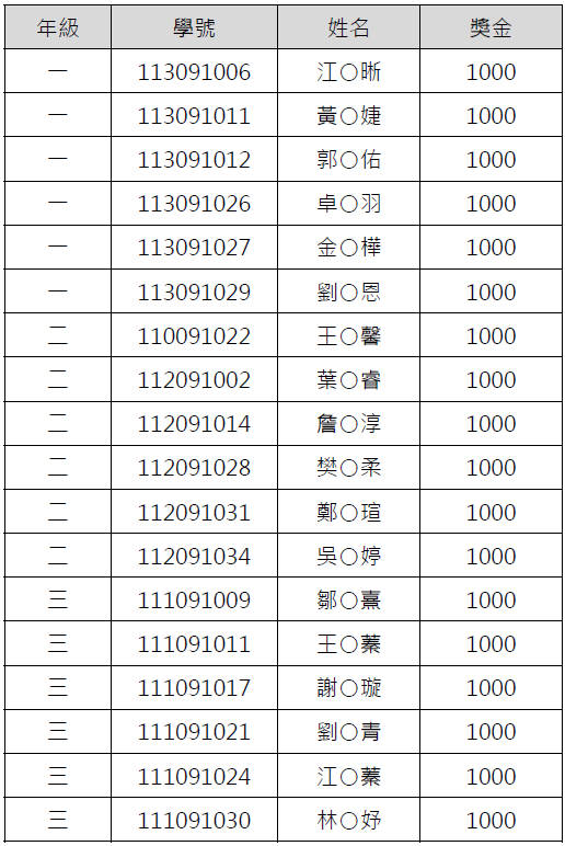 (依年級、學號排序)
